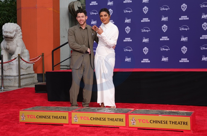03 December 2025 . Hollywood, California - Nick Jonas, Priyanka Chopra Jonas At Jonas Brothers Hand And Footprint In Cement Ceremony held at The TCL Chinese Theatre in Hollywood., Credit:Sadou Faye / Avalon
