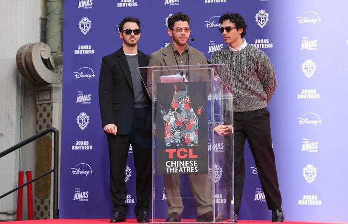 03 December 2025 . Hollywood, California - Nick Jonas, Kevin Jonas, Joe Jonas At Jonas Brothers Hand And Footprint In Cement Ceremony held at The TCL Chinese Theatre in Hollywood., Credit:Sadou Faye / Avalon