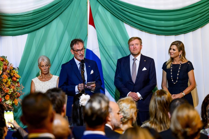 Paramaribo, The Netherlands, 2025-12-03 19:01:38PARAMARIBO, December 3, 2025, Dutch Residence. King Willem-Alexander and Queen Máxima are paying a state visit to the Republic of Suriname at the invitation of President Jennifer Geerlings-Simons. The third and final day of the state visit will conclude with a reception for the Dutch community. At the residence, the Royal Couple will speak with Dutch people living or working in Suriname. PHOTO: NLBeeld/Patrick van Emst, Credit:Avalon