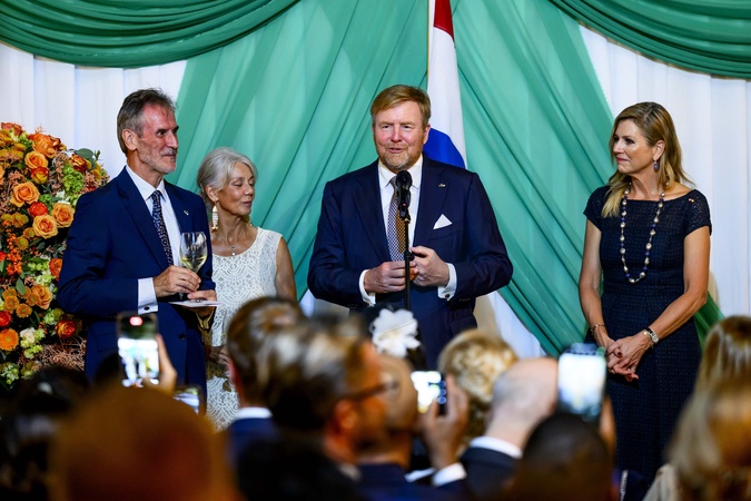 Paramaribo, The Netherlands, 2025-12-03 19:04:44PARAMARIBO, December 3, 2025, Dutch Residence. King Willem-Alexander and Queen Máxima are paying a state visit to the Republic of Suriname at the invitation of President Jennifer Geerlings-Simons. The third and final day of the state visit will conclude with a reception for the Dutch community. At the residence, the Royal Couple will speak with Dutch people living or working in Suriname. PHOTO: NLBeeld/Patrick van Emst, Credit:Avalon