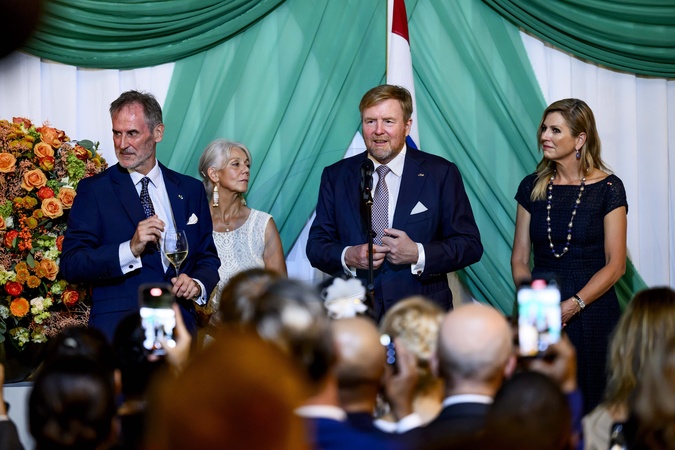 Paramaribo, The Netherlands, 2025-12-03 19:05:00PARAMARIBO, December 3, 2025, Dutch Residence. King Willem-Alexander and Queen Máxima are paying a state visit to the Republic of Suriname at the invitation of President Jennifer Geerlings-Simons. The third and final day of the state visit will conclude with a reception for the Dutch community. At the residence, the Royal Couple will speak with Dutch people living or working in Suriname. PHOTO: NLBeeld/Patrick van Emst, Credit:Avalon