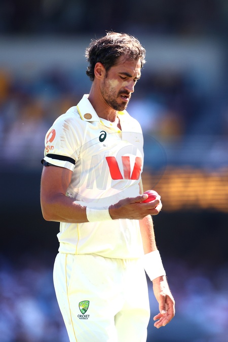 Mitchell Starc of Australia looks on during the NRMA Insurance Ashes Second Test Day 1 Series match Australia vs England at The Gabba, Brisbane Cricket Ground, Brisbane, United Kingdom, 4th December 2025, Credit:Patrick Hoelscher/News Images / Avalon