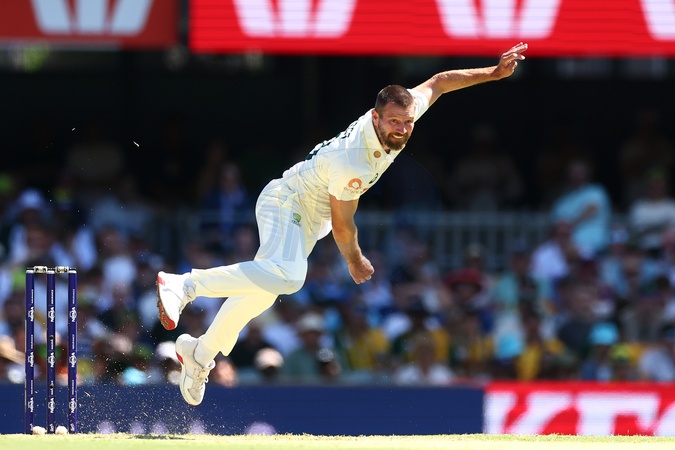 Michael Neser of Australia bowls during the NRMA Insurance Ashes Second Test Day 1 Series match Australia vs England at The Gabba, Brisbane Cricket Ground, Brisbane, United Kingdom, 4th December 2025, Credit:Patrick Hoelscher/News Images / Avalon