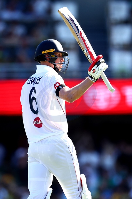 Zak Crawley of England celebrates reaching 50 runs during the NRMA Insurance Ashes Second Test Day 1 Series match Australia vs England at The Gabba, Brisbane Cricket Ground, Brisbane, United Kingdom, 4th December 2025, Credit:Patrick Hoelscher/News Images / Avalon