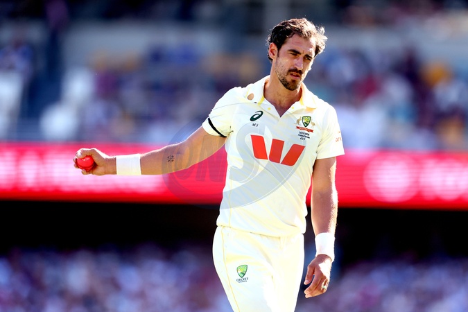 Mitchell Starc of Australia looks on during the NRMA Insurance Ashes Second Test Day 1 Series match Australia vs England at The Gabba, Brisbane Cricket Ground, Brisbane, United Kingdom, 4th December 2025, Credit:Patrick Hoelscher/News Images / Avalon