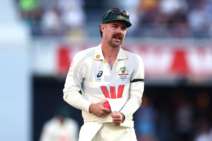 Travis Head of Australia looks on during the NRMA Insurance Ashes Second Test Day 1 Series match Australia vs England at The Gabba, Brisbane Cricket Ground, Brisbane, Australia, 4th December 2025, Credit:Patrick Hoelscher/News Images / Avalon