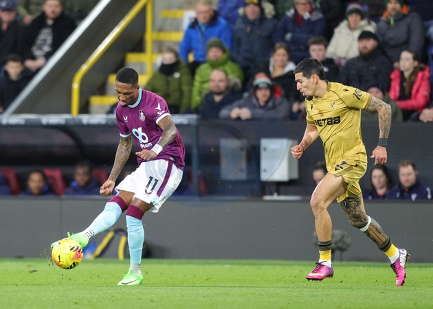 Jaidon Anthony of Burnley passes the ball during the Premier League match Burnley vs Crystal Palace at Turf Moor, Burnley, United Kingdom, 3rd December 2025, Credit:Richard Bierton/News Images / Avalon