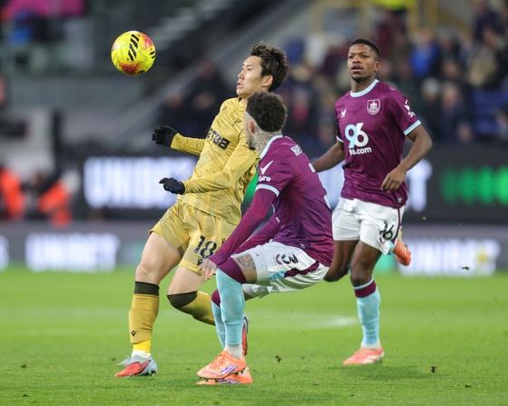 Daichi Kamada of Crystal Palace and Quilindschy Hartman of Burnley battle for the ball during the Premier League match Burnley vs Crystal Palace at Turf Moor, Burnley, United Kingdom, 3rd December 2025, Credit:Richard Bierton/News Images / Avalon