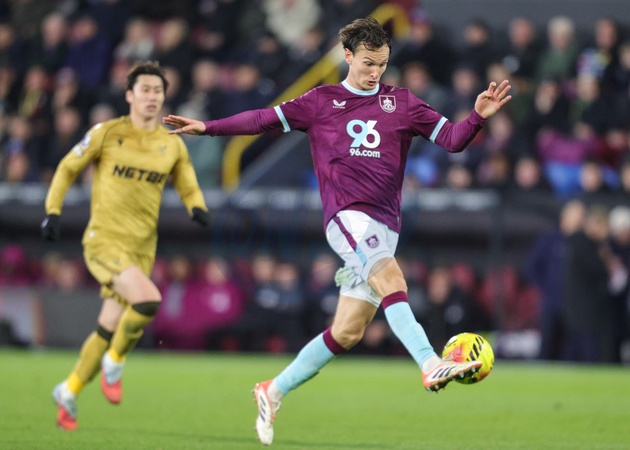 Hjalmar Ekdal of Burnley controls the ball during the Premier League match Burnley vs Crystal Palace at Turf Moor, Burnley, United Kingdom, 3rd December 2025, Credit:Richard Bierton/News Images / Avalon