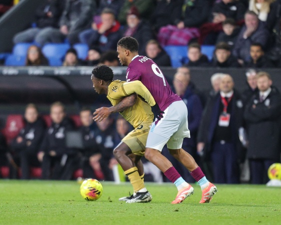 Eddie Nketiah of Crystal Palace holds off Lyle Foster of Burnley during the Premier League match Burnley vs Crystal Palace at Turf Moor, Burnley, United Kingdom, 3rd December 2025, Credit:Richard Bierton/News Images / Avalon