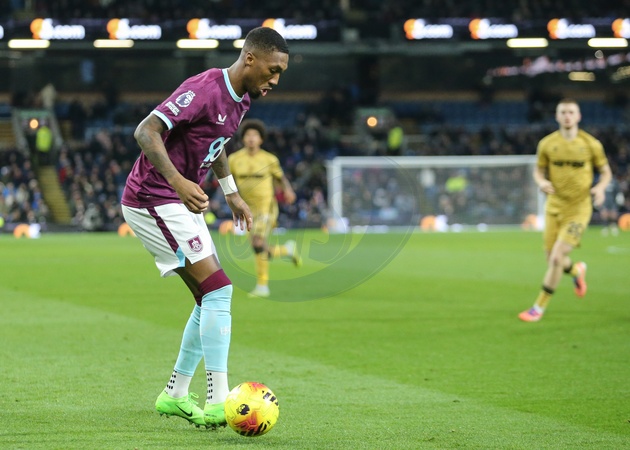 Jaidon Anthony of Burnley controls the ball during the Premier League match Burnley vs Crystal Palace at Turf Moor, Burnley, United Kingdom, 3rd December 2025, Credit:Richard Bierton/News Images / Avalon