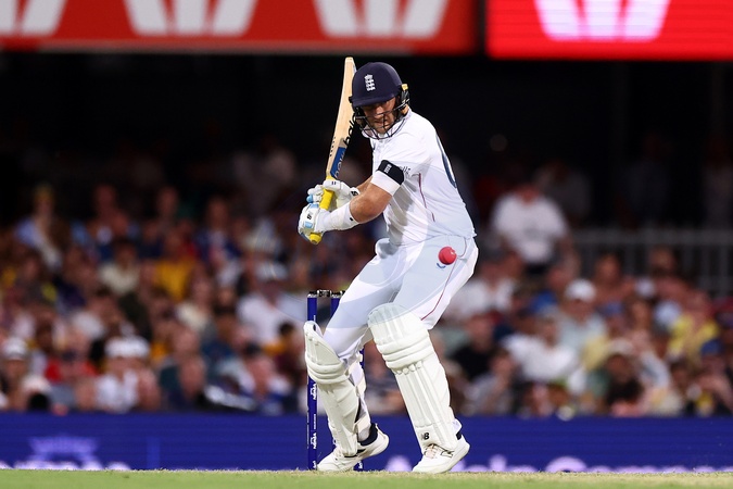 Joe Root of England bats during the NRMA Insurance Ashes Second Test Day 1 Series match Australia vs England at The Gabba, Brisbane Cricket Ground, Brisbane, Australia, 4th December 2025, Credit:Patrick Hoelscher/News Images / Avalon