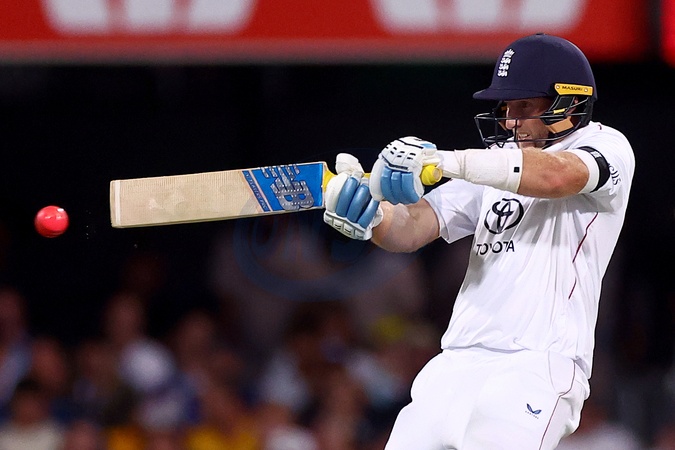 Joe Root of England bats during the NRMA Insurance Ashes Second Test Day 1 Series match Australia vs England at The Gabba, Brisbane Cricket Ground, Brisbane, Australia, 4th December 2025, Credit:Patrick Hoelscher/News Images / Avalon