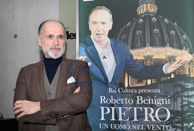 Press preview for Benigni's television show "Pietro, a Man in the Wind," a monologue dedicated to the history of St. Peter's. Pictured is Giampaolo Rossi, CEO of Rai. Rome, Maxxi Auditorium. Rai Cultura. Dec 4th 2025, Credit:Maria Laura Antonelli / Avalon