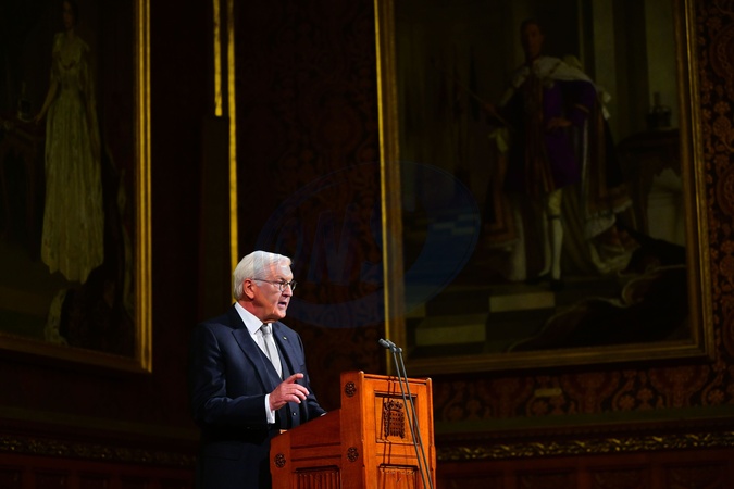 President of the Federal Republic of Germany Frank-Walter Steinmeier addresses members of the House of Lords and the House of Commons in the Royal Gallery at the Palace of Westminster.President of the Federal Republic of Germany Frank-Walter Steinmeier State Visit, Day 2, Address to Parliament, Palace of Westminster, London, UK - 04 Dec 2025, Credit:Victoria Jones/Shutterstock / Avalon