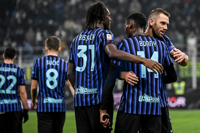San Siro Stadium. Round of 16 of the Coppa Italia Freccia Rossa. Inter vs. Venezia. Inter's fifth goal with Ange-Yoan Bonny. Milan, Dec 3rd 2025, Credit:Nicola Marfisi/AGF / Avalon
