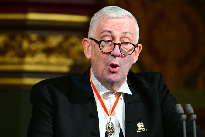 Speaker of the House of Commons Sir Lindsay Hoyle addresses members of the House of Lords and the House of Commons in the Royal Gallery at the Palace of Westminster.President of the Federal Republic of Germany Frank-Walter Steinmeier State Visit, Day 2, Address to Parliament, Palace of Westminster, London, UK - 04 Dec 2025, Credit:Victoria Jones/Shutterstock / Avalon
