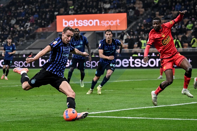 San Siro Stadium. Round of 16 of the Coppa Italia Freccia Rossa. Inter vs. Venezia. Davide Frattesi shooting. Milan, Dec 3rd 2025, Credit:Nicola Marfisi/AGF / Avalon