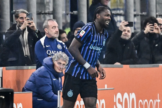 San Siro Stadium. Round of 16 of the Coppa Italia Freccia Rossa. Inter vs. Venezia. Inter's third goal with Marcus Thuram. Milan, Dec 3rd 2025, Credit:Nicola Marfisi/AGF / Avalon