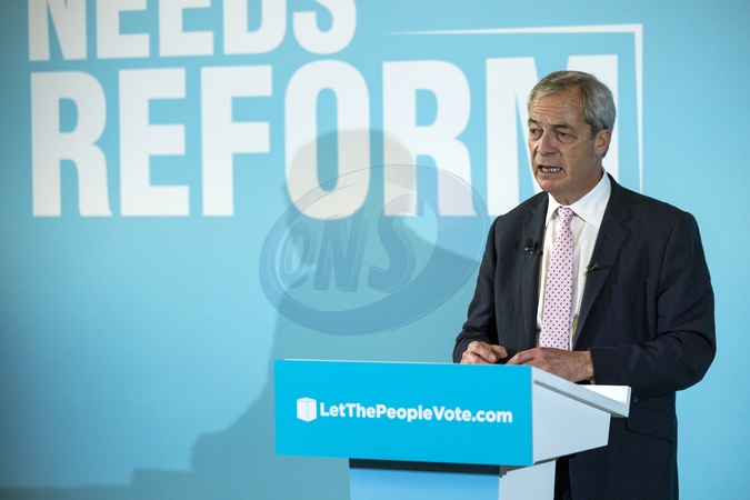 Nigel Farage MP spoke at a Reform UK press conference in Westminster, responding to the cancellation of upcoming elections. The Labour government plans to delay Mayoral elections in Essex, Hampshire and the Solent, Sussex and Brighton, and Norfolk and Suffolk by at least two years., Credit:Abdullah Bailey / Avalon