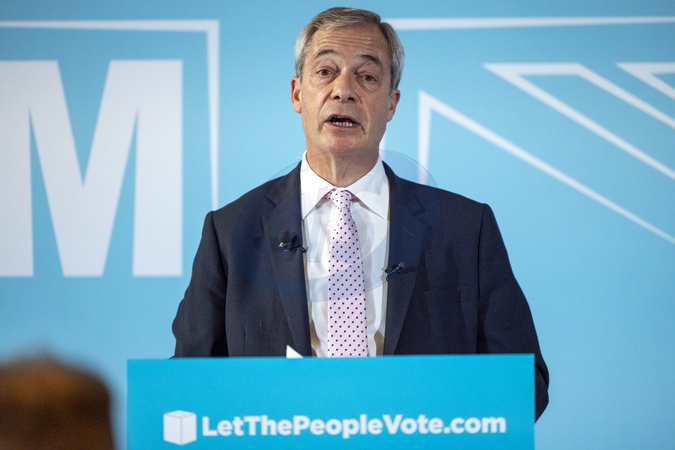 Nigel Farage MP spoke at a Reform UK press conference in Westminster, responding to the cancellation of upcoming elections. The Labour government plans to delay Mayoral elections in Essex, Hampshire and the Solent, Sussex and Brighton, and Norfolk and Suffolk by at least two years., Credit:Abdullah Bailey / Avalon