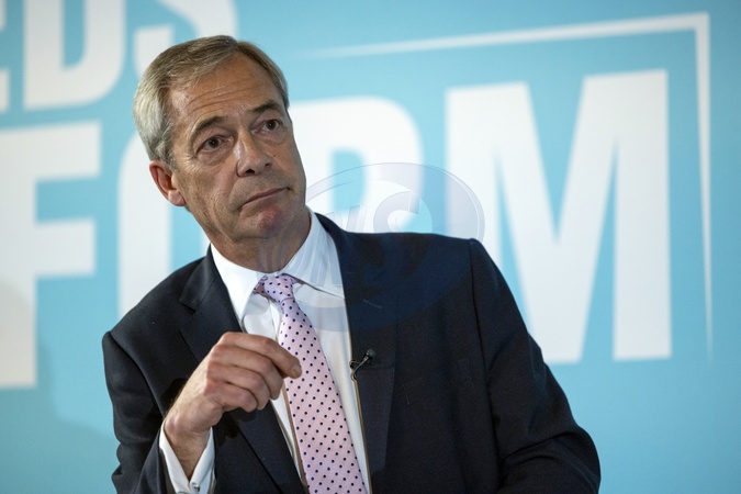 Nigel Farage MP spoke at a Reform UK press conference in Westminster, responding to the cancellation of upcoming elections. The Labour government plans to delay Mayoral elections in Essex, Hampshire and the Solent, Sussex and Brighton, and Norfolk and Suffolk by at least two years., Credit:Abdullah Bailey / Avalon