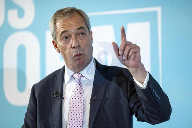Nigel Farage MP spoke at a Reform UK press conference in Westminster, responding to the cancellation of upcoming elections. The Labour government plans to delay Mayoral elections in Essex, Hampshire and the Solent, Sussex and Brighton, and Norfolk and Suffolk by at least two years., Credit:Abdullah Bailey / Avalon