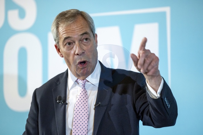 Nigel Farage MP spoke at a Reform UK press conference in Westminster, responding to the cancellation of upcoming elections. The Labour government plans to delay Mayoral elections in Essex, Hampshire and the Solent, Sussex and Brighton, and Norfolk and Suffolk by at least two years., Credit:Abdullah Bailey / Avalon