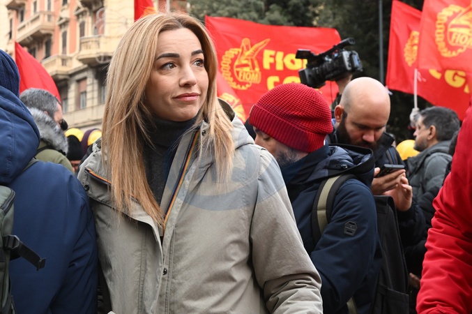 The Ilva steelworks in Genoa must not close. Genoa metalworkers, members of the Fiom-Cgil-Fimm-Cis union, are on strike. Pictured is Genoa Mayor Silvia Salis. Genova, Italy 04 December 2025, Credit:Aleandro Biagianti / Avalon