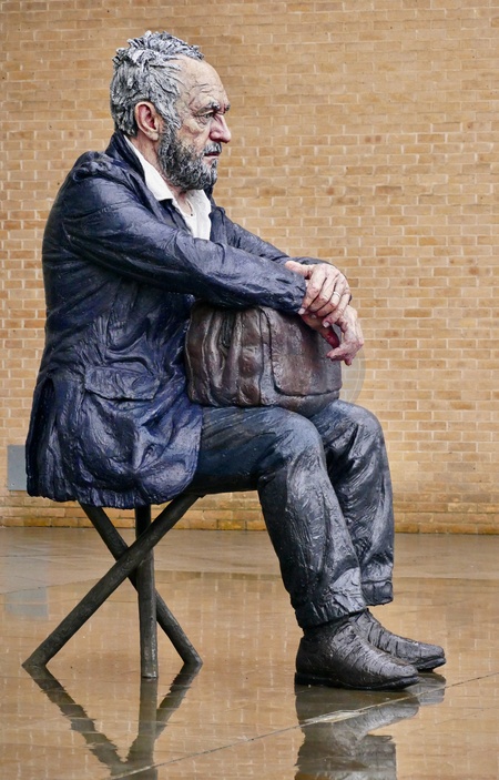 A mysterious statue has appeared outside Oxford's Saïd Business School. The huge sculpture depicts a bearded man sitting down with his arms resting on his briefcase.Installed outside the Sad Business School, it was sculpted by Sean Henry, an artist based in Hampshire. His approach fuses the disciplines of ceramics with those of sculpture and his works include the Seated Figure at the North York Moors National Park, created in 2017., Credit:Geoffrey Swaine / Avalon