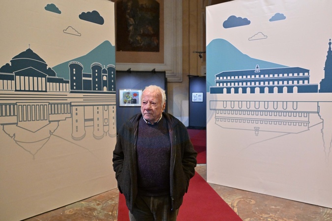 The Joan Miró exhibition opens in the Basilica of Santa Maria Marggiore alla Petrasanta. Pictured: Achille Bonito Oliva Naples, Italy 03 December 2025, Credit:Felice De Martino / Avalon