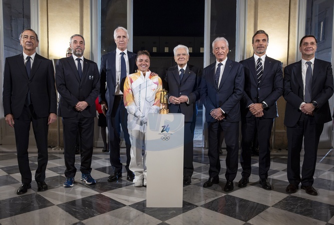 President Mattarella welcomed the Olympic flame at the Quirinale