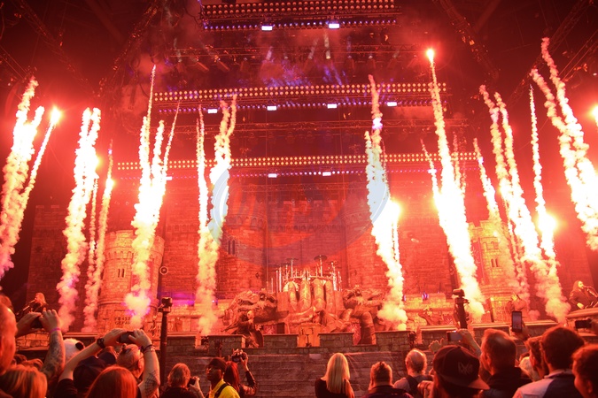 (L-R) - Guitarist Chris Rörland, Bassist Pär Sundström, Lead singer Joakim Brodén and Guitarist Chris Rörland of Swedish power metal band Sabaton and Napoleon Bonaparte played by Raphael Lecat performs at O2 Arena, London, England, UK on Thursday 4 December 2025 as part of their "The Legendary Tour"., Credit:Justin Ng / Avalon