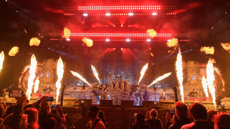 (L-R) - Guitarist Chris Rörland, Bassist Pär Sundström, Lead singer Joakim Brodén and Guitarist Chris Rörland of Swedish power metal band Sabaton and Napoleon Bonaparte played by Raphael Lecat performs at O2 Arena, London, England, UK on Thursday 4 December 2025 as part of their "The Legendary Tour"., Credit:Justin Ng / Avalon