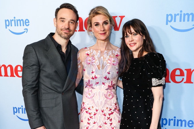 CULVER CITY, LOS ANGELES, CALIFORNIA, USA - DECEMBER 04: English actor Charlie Cox, British playwright, theatre director and screenwriter Jessica Swale and American actress, singer, songwriter, and producer Zooey Deschanel arrive at the Los Angeles Special Screening Of Amazon Prime Video's 'Merv' held at The Culver Theater on December 4, 2025 in Culver City, Los Angeles, California, United States., Credit:Xavier Collin / Avalon