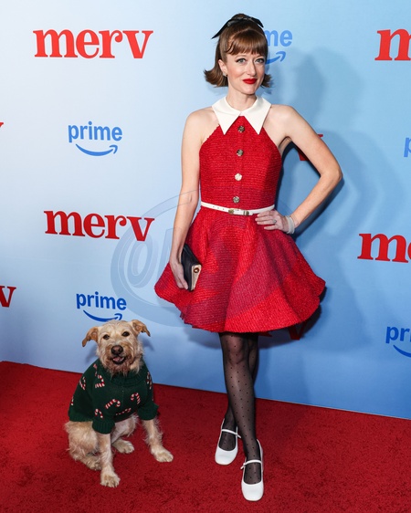 CULVER CITY, LOS ANGELES, CALIFORNIA, USA - DECEMBER 04: Gus the Dog and American actress Victoria Blade arrive at the Los Angeles Special Screening Of Amazon Prime Video's 'Merv' held at The Culver Theater on December 4, 2025 in Culver City, Los Angeles, California, United States., Credit:Xavier Collin / Avalon