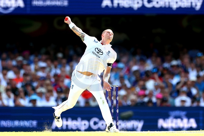 Brydon Carse of England bowls during the NRMA Insurance Ashes Second Test Day 2 Australia vs England at The Gabba, Brisbane Cricket Ground, Brisbane, Australia, 5th December 2025, Credit:Pat Hoelscher/News Images / Avalon