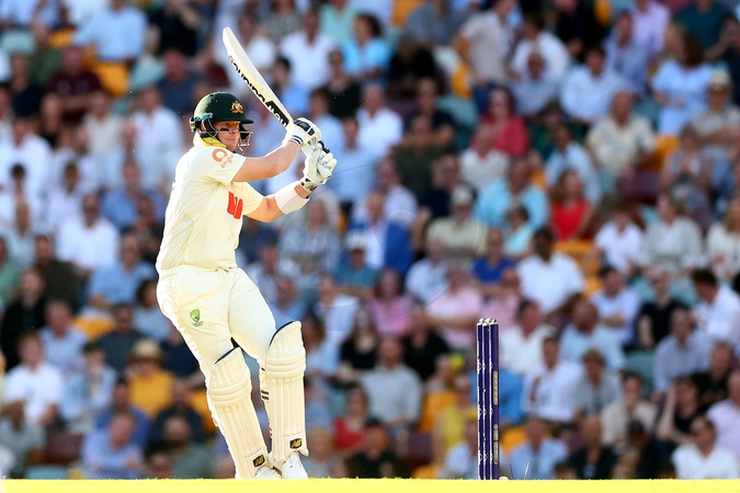 Steve Smith of Australia bats during the NRMA Insurance Ashes Second Test Day 2 Australia vs England at The Gabba, Brisbane Cricket Ground, Brisbane, Australia, 5th December 2025, Credit:Pat Hoelscher/News Images / Avalon