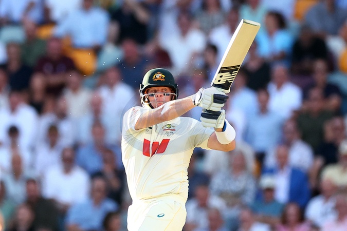 Steve Smith of Australia bats during the NRMA Insurance Ashes Second Test Day 2 Australia vs England at The Gabba, Brisbane Cricket Ground, Brisbane, Australia, 5th December 2025, Credit:Pat Hoelscher/News Images / Avalon