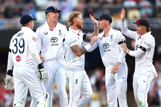 Ben Stokes of England dismisses Marnus Labushchagne of Australia during the NRMA Insurance Ashes Second Test Day 2 Australia vs England at The Gabba, Brisbane Cricket Ground, Brisbane, Australia, 5th December 2025, Credit:Pat Hoelscher/News Images / Avalon