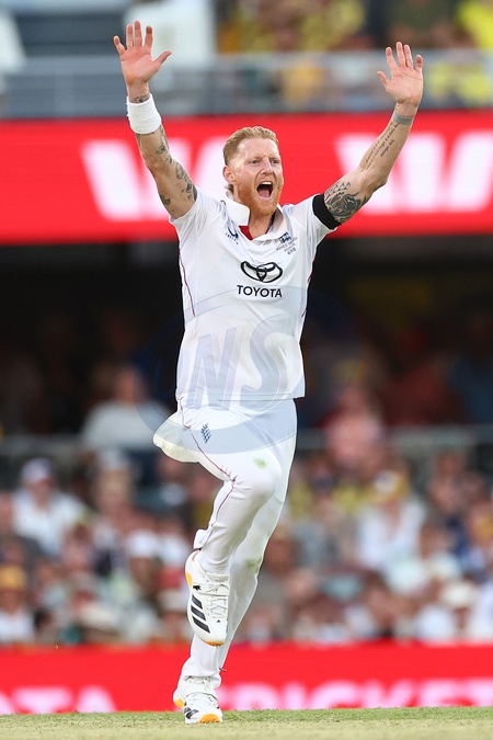 Ben Stokes of England dismisses Marnus Labushchagne of Australia during the NRMA Insurance Ashes Second Test Day 2 Australia vs England at The Gabba, Brisbane Cricket Ground, Brisbane, Australia, 5th December 2025, Credit:Pat Hoelscher/News Images / Avalon