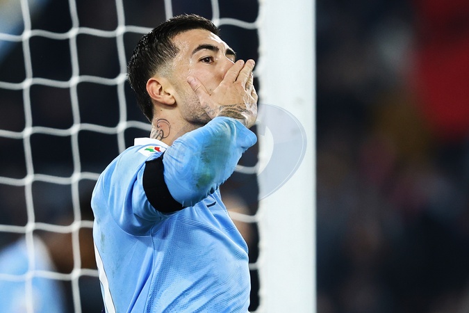 Coppa Italia round of 16 Lazio-Milan, in the photo Mattia Zaccagni celebrates after the 1-0 goal Rome, Olympic stadium, Dec 4th 2025, Credit:/AGF / Avalon
