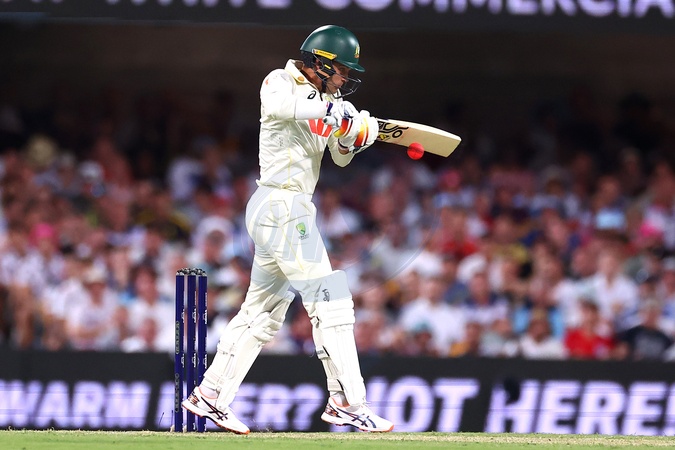 Alex Carey of Australia bats during the NRMA Insurance Ashes Second Test Day 2 Australia vs England at The Gabba, Brisbane Cricket Ground, Brisbane, Australia, 5th December 2025, Credit:Pat Hoelscher/News Images / Avalon