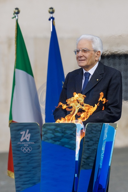 Inauguration Ceremony of the Olympic Torch Relay. Pictured is the President of the Republic Sergio Mattarella. Rome, Dec 5th 2025, Credit:/AGF / Avalon