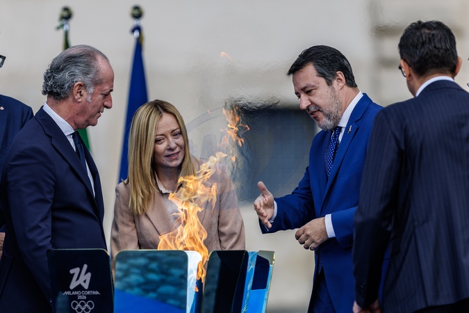 Inauguration Ceremony of the Olympic Torch Relay Journey. Pictured are Prime Minister Giorgia Meloni, Minister of Infrastructure and Transport Matteo Salvini, and Luca Zaia. Rome, Dec 5th 2025, Credit:/AGF / Avalon
