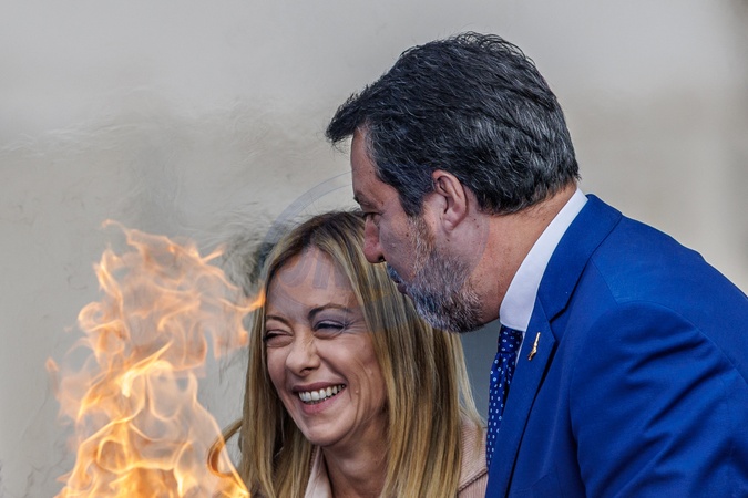 Inauguration Ceremony of the Olympic Torch Relay. Pictured are Prime Minister Giorgia Meloni and Minister of Infrastructure and Transport Matteo Salvini. Rome, Dec 5th 2025, Credit:/AGF / Avalon