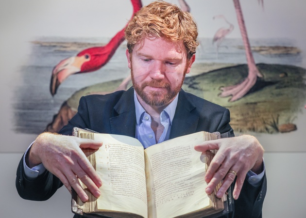 London, UK. 05th Dec, 2025. Christie's staff with a rare 10th-century Gospel book linked to a female scriptorium. Estimate: £700,000–1,000,000.Christie's Valuable Books & Manuscripts sale, part of Classic Week, will be on 10 December, 2025., Credit:Imageplotter / Avalon