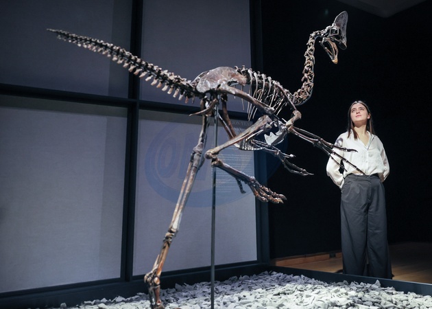 London, UK. 05th Dec, 2025. Christie's staff with 'Spike' – arguably the most complete caenagnathid in private hands; debut of oviraptorosaurs at auction. Estimate: £3,000,000–5,000,000. Christie's Groundbreakers: Icons of Our Time, part of Classic Week, will be on 11 December, 2025., Credit:Imageplotter / Avalon