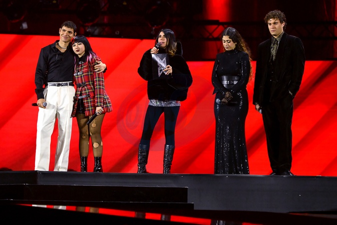 X Factor 2025 Finale in Piazza del Plebiscito, .in the photo: Giorgia, Rob, eroCaddeo, PierC, Delia Naples, Dec 4th 2025, Credit:AGF / Avalon