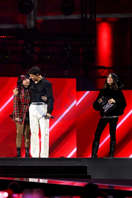 X Factor 2025 Finale in Piazza del Plebiscito, .in the photo: Giorgia, Rob, eroCaddeo Naples, Dec 4th 2025, Credit:AGF / Avalon